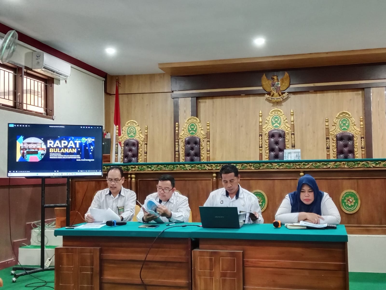 Bismillah. Senin, 15 September 2025 Pengadilan Agama Raha melaksanakan kegiatan rutin yaitu rapat bulanan dan persiapan menghadapi kegiatan hari ulang tahun Pengadilan Tinggi Agama Kendari (PTA). Rapat ini dipimpin oleh YM. H. Adam, S.Ag.,M.H dihadiri oleh Wakil Ketua ,Hakim, Panitera, Sekertaris serta seluruh pegawai Pengadilan Agama Raha. Rapat diawali dengan pembukaan oleh Sekretaris Pengadilan Agama Raha, Maemunah. R, S.H.I. sekaligus menyampaikan laporan umum termasuk capaian kinerja, hambatan, dan langkah tindak lanjut. Selanjutnya, masing-masing bagian dari Kesekretariatan dan Kepaniteraan menyampaikan laporan evaluasi serta permasalahan yang dihadapi dalam pelaksanaan tugas pokok dan fungsi.