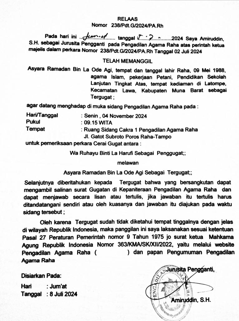 Panggilan Sidang Terguat an. Asyara Ramadan bin La Ode Egi Written by Super User on 05 July 2024. Written by Super User on 05 July 2024. Hits: 130